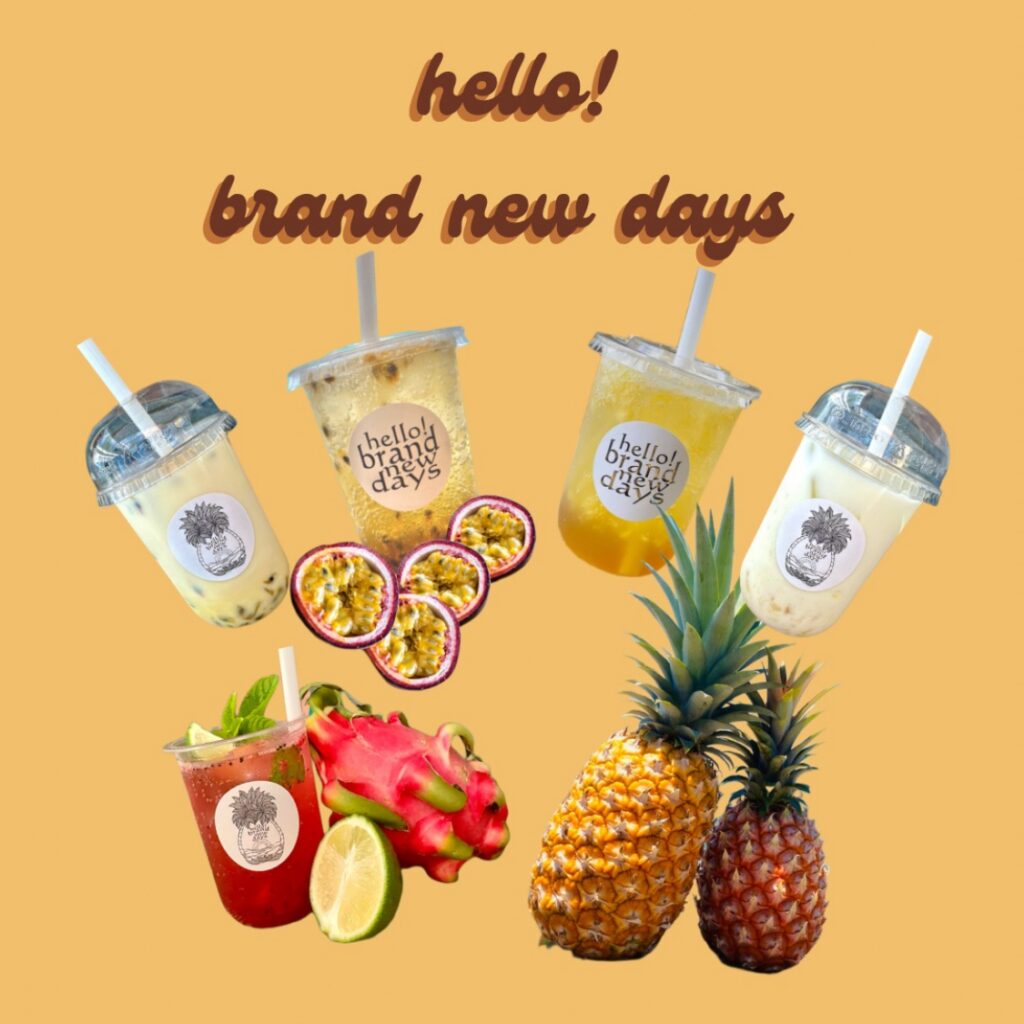 完熟パイナップルとパッションフルーツを使用した南国フルーツドリンク。
