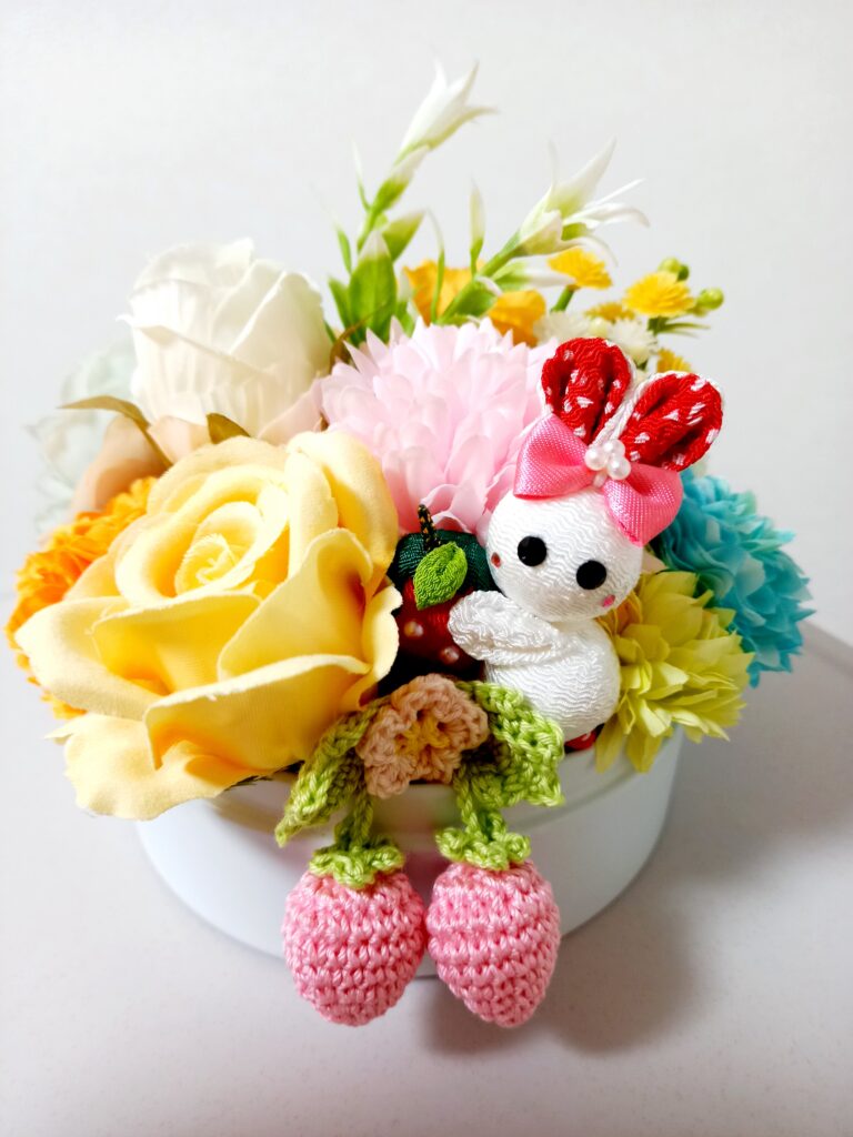 つまみ細工と造花のアレンジメント